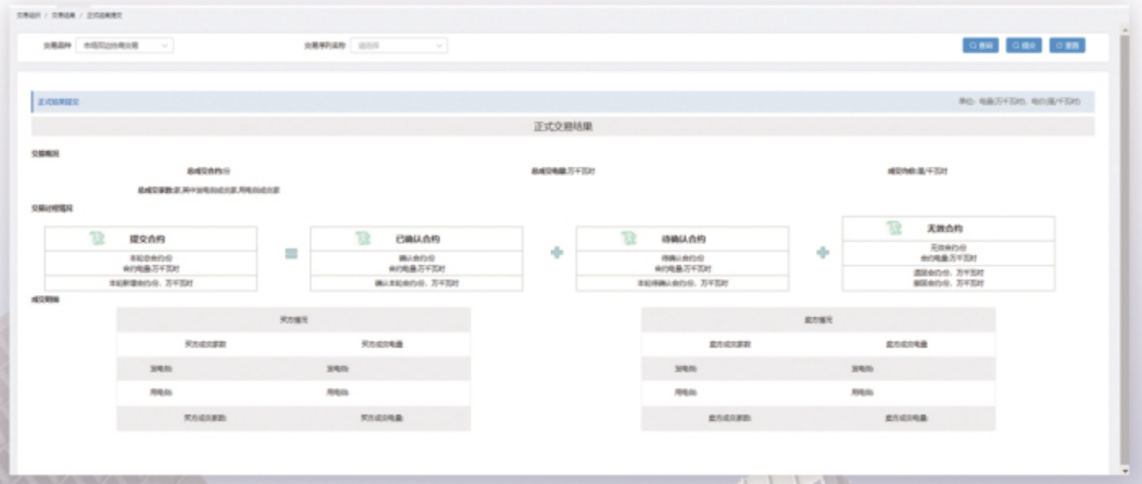 是指交易閉市后,電力交易機構(gòu)對各市場主體提交的申報結(jié)果進行統(tǒng)計并校核的過程,包括對交易結(jié)果概況、交易申報數(shù)據(jù)等進行校驗等操作。