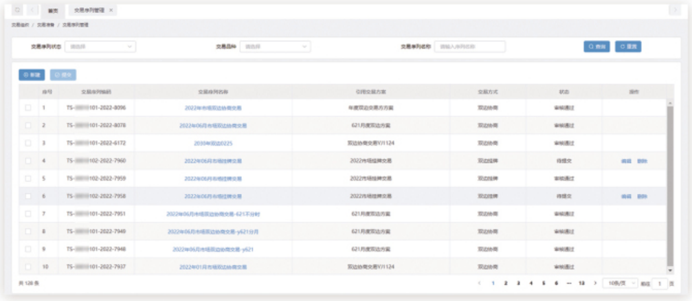 對交易序列的維護,通過選擇交易方案,按需選擇交易需求,從準入、申報、出清等方面對交易進行準備,同時生成交易序列。